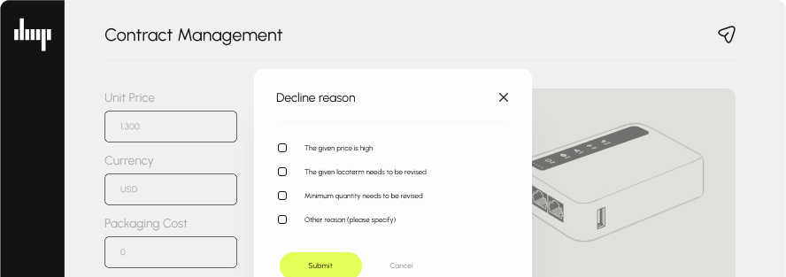 Utilize AI-powered negotiations with suppliers based on benchmarking results. Let dmp guide you through intelligent and data-driven negotiations, ensuring fair and competitive agreements.